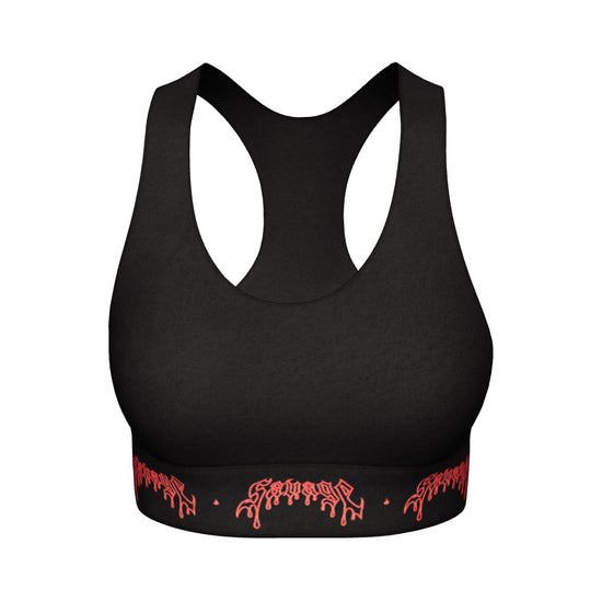 Top in cotone con retro a vogatore, scollo rotondo e logo “SAVAGE” cucito sull’elastico.